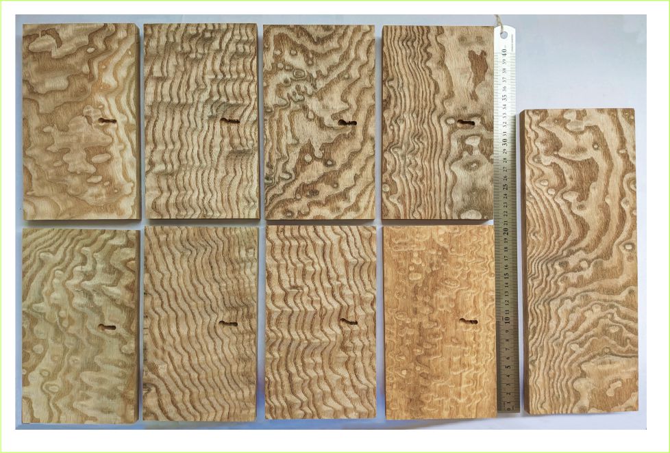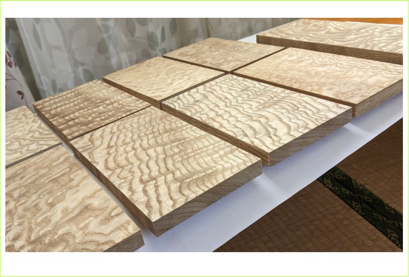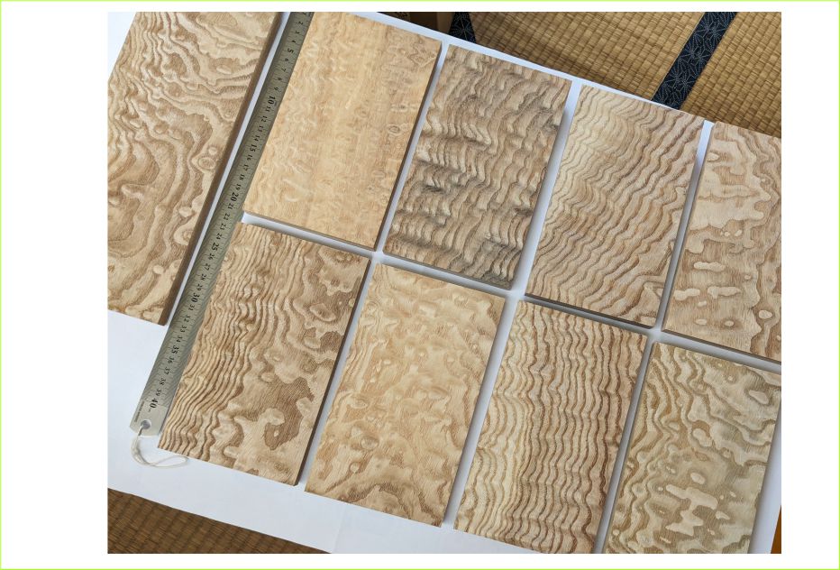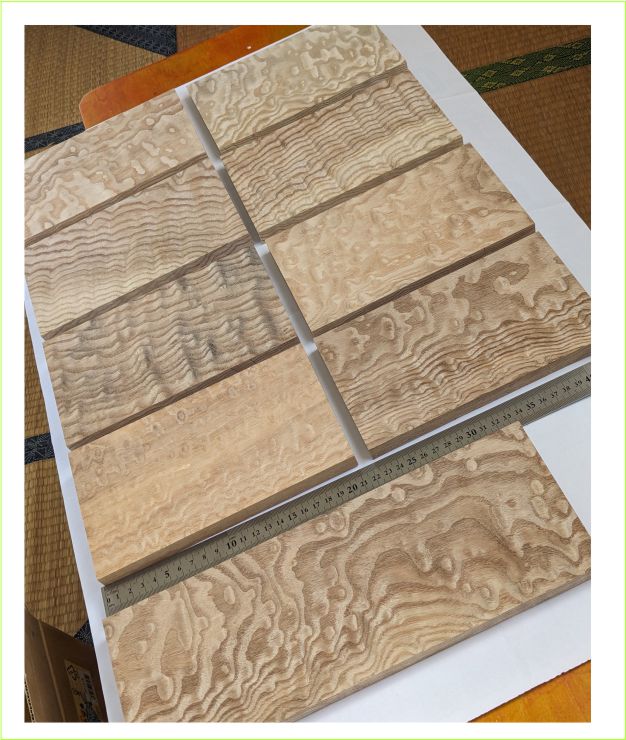 - ■北海道産タモ材 木目が玉模様に現れる玉杢 きれいな材です。