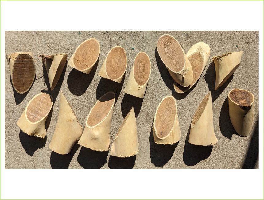 - ■北海道槐材。斜め輪切りの残りの部分 端材 15個。